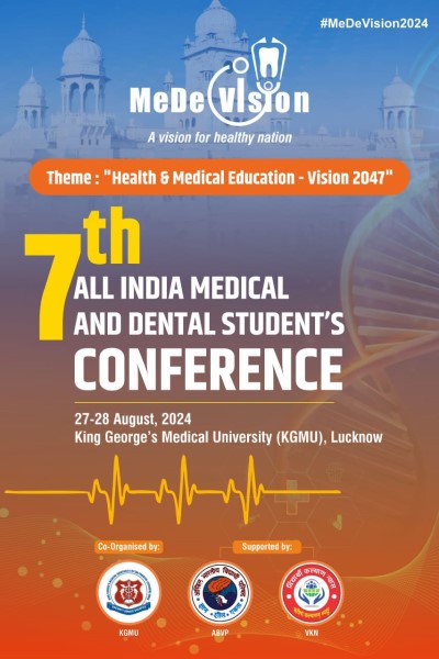 The 7th All India Medical and Dental Students Conference organised by MeDeVision is going to take place on 27-28th August 2024 at King George's Medical University (KGMU), Lucknow